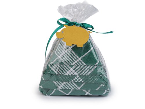 Kvalitní utěrky ve vánočním balení jsou vyrobené z egyptské bavlny, která je považována za nejkvalitnější bavlnu na světě. Utěrky jsou extrémně savé, stálobarevné, hebké, bez žmolků a mají dlouhou životnost. Za poutko je můžete pohodlně zavěsit. Jsou zabalené v transparentním sáčku do tvaru vánočního stromečku, jsou ozdobené mašlí s vánoční visačkou. Díky vánočnímu balení mohou být krásným a praktickým dárkem pod stromeček. V jednom balení jsou 3 kusy utěrek.