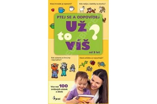 Publikace UŽ TO VÍŠ? Ptej se a odpovídej je určena pro děti od 3 let. Titul obsahuje více než 100 zvídavých otázek a úkolů. Při hře je nutná spolupráce rodiče, který popisuje dítěti obrázky a klade mu jednoduché otázky. Jako např. kolik je na obrázku zvířat, do jaké pohádky patří ježibaba atd. Správné odpovědi jsou vždy na rubu konkrétní stránky. Úkoly podporují představivost, vyjadřovací schopnosti i logické myšlení dítěte. Využitelnost knihy je díky její velikosti neomezená. Můžete ji používat doma, na cestách, v čekárně u lékaře, prostě kdekoli.