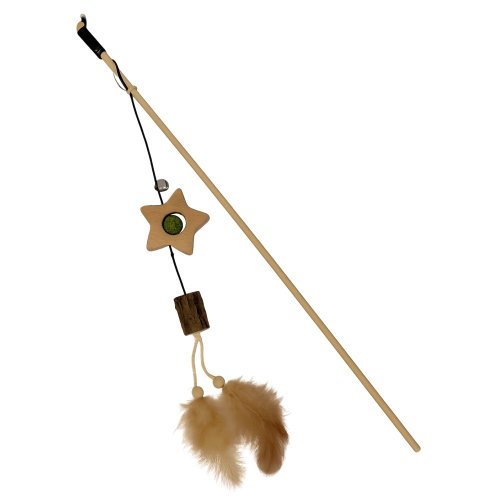 Dopřejte své kočce hodiny zábavy a pohybu s touto stylovou vábničkou. Hračka je tvořena pevným, pohodlně uchopitelným prutem a odolnou šňůrkou, na jejímž konci je dřevěná hračka s ukrytým catnipem.