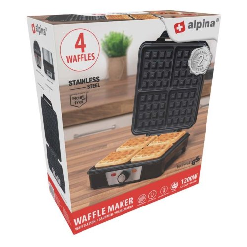 Udělejte vafle pro celou rodinu s tímto vaflovačem od Alpina, se kterým můžete připravit až 4 vafle najednou. Připojte vaflovač, počkejte, až se kontrolka rozsvítí a vložte těsto do přístroje. Během několika minut jsou vafle hotové a můžete si vychutnat lahodnou snídani, kterou oceníte celá rodina.Nepřilnavý povrch a kontrolka.S výkonem 1200 W se vaflovač rychle zahřeje a je také rychle hotovo s přípravou vaflí. Rukojeť zůstává po zahřátí vaflového železa studená, abyste si nespálili prsty. Po dokončení můžete kabel uložit do určené přihrádky v přístroji.Nastavitelná teplotaPoté, co jste vaflovač poprvé vyčistili, připojte jej k proudu a zapněte jej otevřením otočného tlačítka do polohy MAX. Vaflovač se zahřívá a zeleným světlem ukazuje, že je připraven k použití. Nalijte těsto do vaflovače a víko opatrně zavřete, aby se nic nerozlilo. Po 3 až 5 minutách jsou vafle hotové a kontrolka se rozsvítí. Vychutnejte si své jídlo.Technické údaje alpina vaflovač 1200 WPříkon: 1200 WVstupní napětí: 220 - 240 V 50/60 HzDoba pečení: 3-5 minutNastavitelná teplota: anoProvozní ukazatel: anoNepřilnavý povrch: anoDélka kabelu: 75 cmÚložný prostor pro kabel: anoRukojeť odolná proti chladu: ano