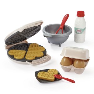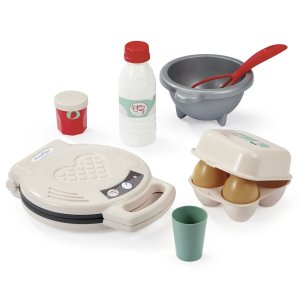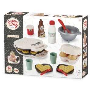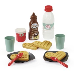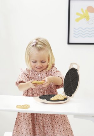Vaflovač s potřebným příslušenstvím pro "upečení" 4 ks ve tvaru srdce pro nejmenší. Rozměry vaflovače: 21 x 17 x 5 cm. Součástí je marmeláda, čokoládová poleva, nádobí pro dva, vajíčka, mléko a miska s metličkou.