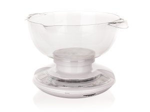 Mechanická kuchyňská váha 5 kg CULINARIA, objem mísy 2 L, materiál: plast ABS tělo (bílá barva), mísa průhledný plast. Váživost 5 kg, rozlišení 50g. Rozměr: 20 x 21 x 17 cm, hmotnost 525 g.