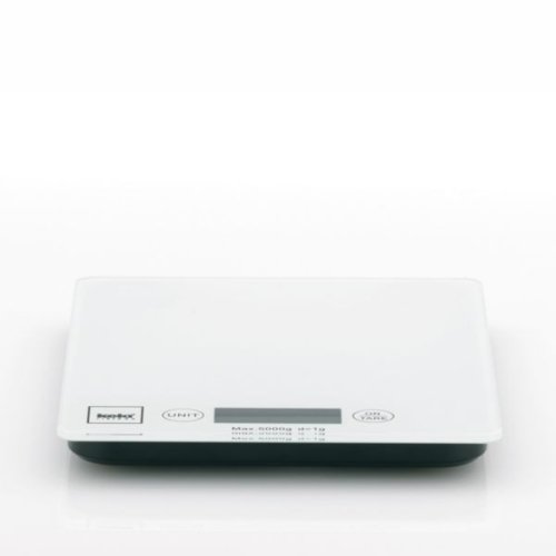 -rozsah vážení 0 - 5 kg-přesnost: 1g-dovažovací funkce-rozměry: 16,5 x 20,5 x 2 cm-velice snadno skladovatelná díky svým malým rozměrům-bílá barva