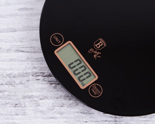 materiál: ABS + tvrzené sklo - LCD displej - kapacita 5 kg - funkce Tare umožňuje odečíst nádobu ve které je váženo - funkce automatického vypnutí při nečinosti - volitelné jednotky: G, LB, KG, OZ - elegantní design - rozměry: 19 x 2 cm - barva: černá / rosegold - kolekce Black Rose Collection