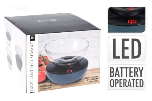 digitální kuchyňská váha- pohodlné vážení díky prostorné míse- velký dobře čitelný LCD displej- maximální kapacita 5 kg- funkce automatického vypnutí při nečinosti- volitelné jednotky: G, OZ, ML- moderní design- napájení: 2 x AAA baterie, není součástí balení- rozměry mísy: 18 x 9 cm- objem mísy: 1,3 litru- barva základny: bílá