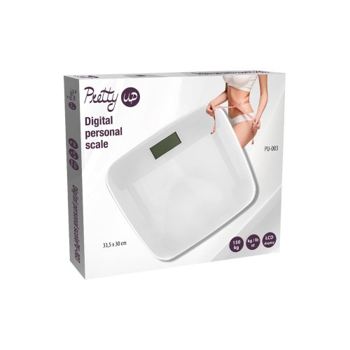 Osobní digitální váha PU-003 v bílé barvě, s LCD displejem a možností vážení v kg a lb. Indikátor slabé baterie a přetížení, automatické vypnutí.