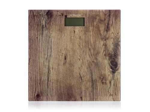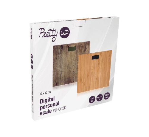 Osobní digitální váha PU-005W v dekoru dřeva s možností vážení v kg a lb. Indikátor slabé baterie a přetížení, automatické vypnutí,.