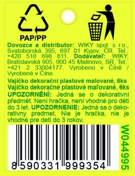 Vajíčko dekorační plastové barevné 4x6 cm, 6 ks