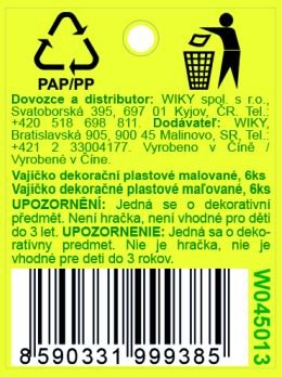 Vajíčko dekorační plastové červenobílé o velikosti 4x6 cm. 6 ks v organza sáčku.