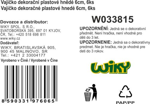 Vajíčko dekorační plastové hnědé o velikosti 6 cm. 6 ks na proložce. Cena za proložku.
