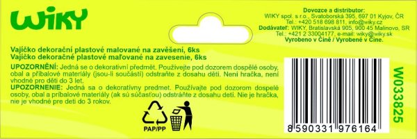 Vajíčko dekorační plastové malované na zavěšení 6 cm, 6ks. 6 ks v balení. Cena za jedno balení.
