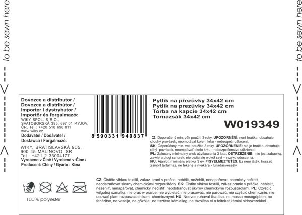 Vak na záda / pytlík na přezůvky o velikosti 34x42 cm. Různé barevné provedení.