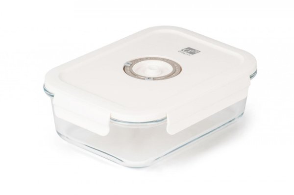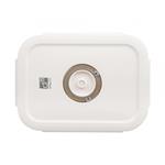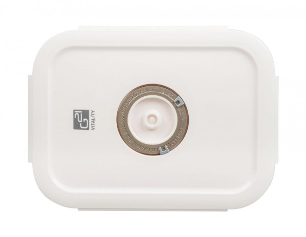Plastové víko je vybaveno vakuovacím ventilem a praktickým nastavováním data. Budete tak vědět, kdy byly potraviny vakuovány nebo do kdy se mají spotřebovat. Ventil uprostřed víka lze jemně zmáčknout pro snadné uvolnění vakua.