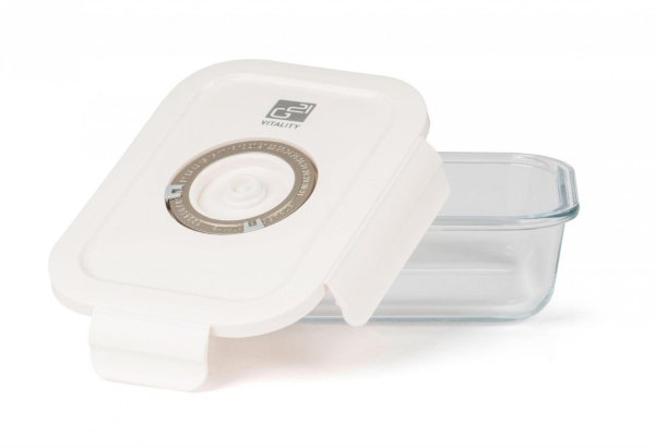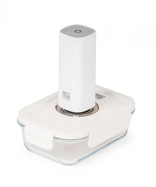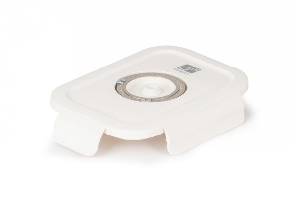 Plastové víko je vybaveno vakuovacím ventilem a praktickým nastavováním data. Budete tak vědět, kdy byly potraviny vakuovány nebo do kdy se mají spotřebovat. Ventil uprostřed víka lze jemně zmáčknout pro snadné uvolnění vakua.