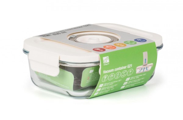 Pro pohodlné a snadné vakuování čerstvých i hotových potravin doporučujeme vynikající vakuovací dózu G21 s objemem 630 ml. Prodlouží trvanlivost potravin, zachová jim čerstvost i plnou chuť a vůni a především všechny zdraví prospěšné látky. Velkou výhodou této dózy je její široké využití – potraviny v ní po zavakuování můžete uložit do ledničky, zamrazit nebo po sundání víka rovnou zapékat v troubě či horkovzdušné fritéze.