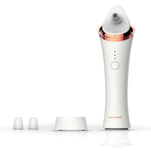 Vakuový čistič pleti Concept PO2010 šetrně vyčistí póry, černé tečky a další nečistoty. Nabízí 3 vyměnitelné nástavce, voděodolné zpracování a kvalitní Li-Ion baterii s indukčním nabíjením přes USB kabel. Vakuový čistič Concept PO2010 vám díky vakuové technologii pomůže s hloubkovým čištěním pleti. Při kontaktu s kůží vytváří přístroj podtlak a za pomoci sání velice šetrně a bezbolestně vyčistí póry, černé tečky a odstraní nečistoty a odumřelé buňky. Díky vyměnitelným nástavcům a možnosti nastavení intenzity čištění je vhodný pro každého, vč. osob s citlivou pokožkou. Pravidelným používáním zlepšíte krevní oběh v oblasti obličeje a zpomalíte stárnutí buněk. Dopřejte si kvalitní péči jako ze salónu a získejte svěží, zdravější a mladistvě vypadající pleť. Vakuový čistič je vybaven třemi nástavci, které můžete jednoduše měnit. Nejširší (10 mm) je vhodný na čištění problematické t-zóny, střední (8,5 mm) využijete pro čištění pórů na nose, tvářích a bradě a nejmenší (7,5 mm) je ideální pro citlivou pleť a lokální čištění komedonů. Vakuový čistič pleti PO2010 je zpracován v luxusním bílém provedení, které je doplněné o elegantní prvky v barvě rosegold. Je součástí designově sladěné řady Perfect Skin zahrnující nejvyšší modely pro péči o vaši pleť.