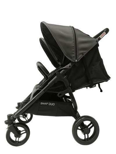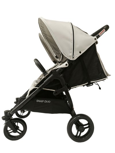 Snap Duo dvojčatový nebo sourozenecký kočárek, který je ideální pro cestování nebo každodenní procházky. Každá sedací část má nosnost do 22kg, čímž umožňuje vozit dvojčata, ale i děti různého věku. Má elegantní černý rám s otočnými předními koly, ručně prošívaným lemováním na rukojeti a madle, jakož i prošívanými sedadly pro luxusnější pocit.