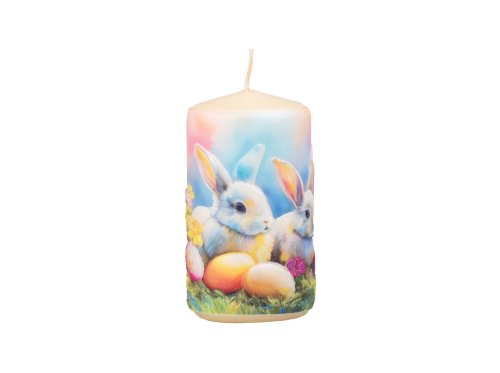Válec 60x110mm zajíčci s vajíčky, krémová svíčka