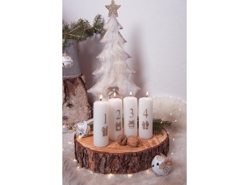 Válec advent 4ks 40x120 mm Dárek s čísly zlatý potisk, bílá svíčka
