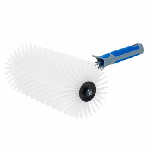 nivelační váleček plast PE - polyetylén průměr: 123 mm, výška trnů: 40 mm kovový držák, plastová rukojeť s otvorem na teleskopickou tyč na odvzdušnění samonivelačních nátěrů tenkých a středních vrstev