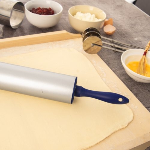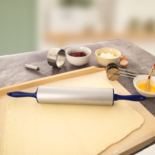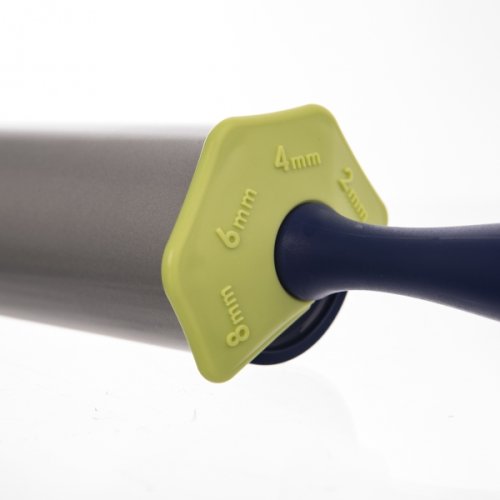 Váleček na těsto s postranními zarážkami, díky kterým si můžete zvolit 4 síly vyváleného těsta. Těsto bude rozválené rovnoměrně a přesně v síle 2/4/6/8 mm. Pootočením válečku můžete vyválet těsto i bez využití těchto zarážek. Materiál kov s nepřilnavou úpravou, plast. Těsto se na povrch nelepí, můžete použít jen minimální množství mouky. Snadná údržba, lze mýt v myčce na nádobí. Průměr 6 cm, délka 25/50 cm. EAN 8592381111038