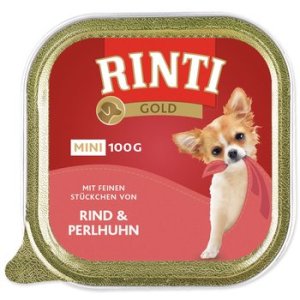 Lahodná paštika s hovězím masem a masem z perličky. Kompletní krmivo pro dospělé psy malých plemen.