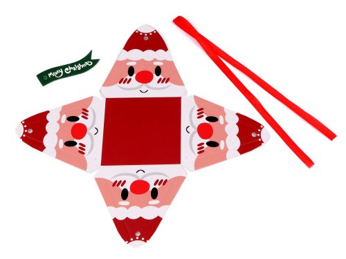 Vánoční krabička pyramida zaujme děti i dospělé. Nahoře se ozdobně zavazuje pomocí přiložené stužky. Součástí balení je i přivazovací vlaječka Merry Christmas. Krabičku můžete použít na drobné dárky nebo ji naplnit dobrotami na Mikuláše. Dodáváme ji v rozloženém stavu (17,5 x 17,5 cm). Složíte ji jednoduše podle vyznačených ohýbacích krajů. Krabička nemá atest na potraviny, pochoutky a jiné laskominy doporučujeme vložit zabalené v sáčku.