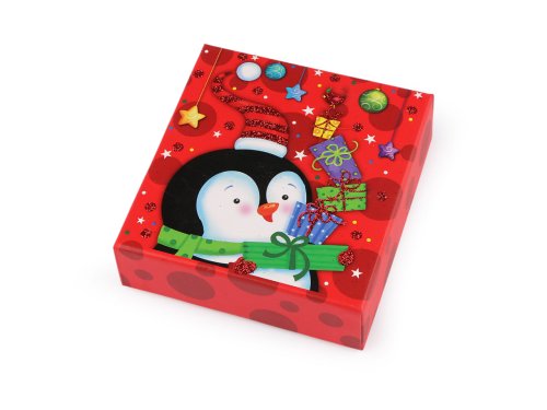Vánoční krabička se skvěle hodí na zabalení mikulášského i vánočního dárku. Je klasická, otevírací s víkem, je velice kvalitní, vyniká svou pevností. Víko zdobí potisk s glitrovými detaily. Uvnitř má papírovou kartičku, na kterou můžete napsat věnování. Dva šikmo umístěné výřezy můžete využít na lepší připevnění vloženého předmětu. Krabička nemá atest na potraviny. Pochoutky a jiné laskominy doporučujeme vložit zabalené v sáčku.