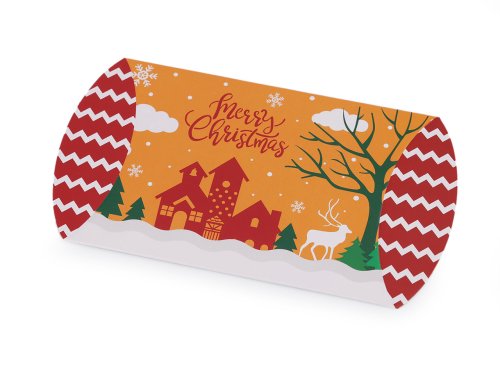 Malá krabička s poutavým vánočním potiskem potěší děti i dospělé. Má tvar polštářku, tzv. pukačka, můžete ji použít na drobné dárky. Krabičku dodáváme v rozloženém stavu (8 x 14,3 cm). Složíte ji jednoduše podle vyznačených ohýbacích krajů. Krabička nemá atest na potraviny, pochoutky a jiné laskominy doporučujeme vložit zabalené v sáčku.