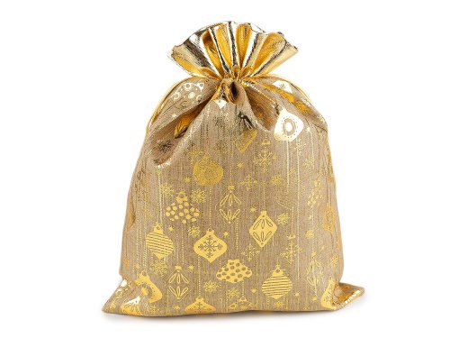Vánoční dárkový pytlík 30x40 cm imitace juty - režná přírodní zlatá