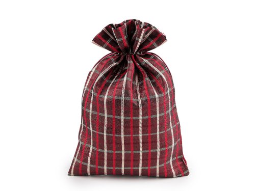 Vánoční dárkový pytlík káro s lurexem 20x30 cm - červená (10 ks)