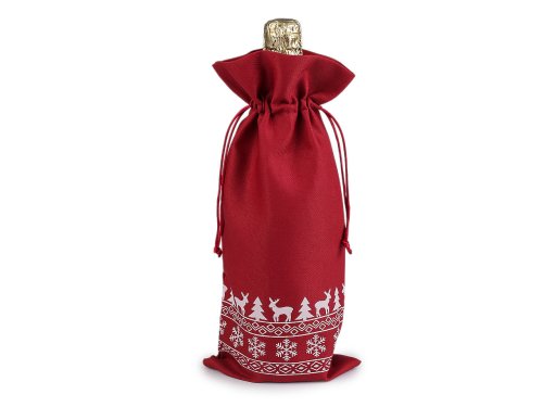 Vánoční dárkový pytlík je z obou stran ozdobený potiskem sobů, stromečků a vloček. Je určený na zabalení lahví a jiných podlouhlých dárků. Pytlík je dostatečně vysoký, ať už se rozhodnete pro dárek s alkoholem nebo s domácí limonádou, ušetří vám čas při balení. Stahuje se pomocí kulatých saténových šňůrek, dárku dodá osobní kouzlo a půvab. Láhev není součástí pytlíku.