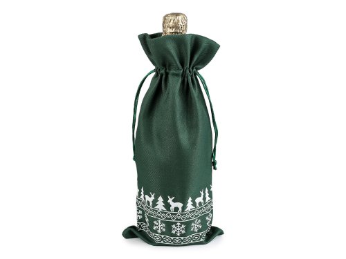 Vánoční dárkový pytlík je z obou stran ozdobený potiskem sobů, stromečků a vloček. Je určený na zabalení lahví a jiných podlouhlých dárků. Pytlík je dostatečně vysoký, ať už se rozhodnete pro dárek s alkoholem nebo s domácí limonádou, ušetří vám čas při balení. Stahuje se pomocí kulatých saténových šňůrek, dárku dodá osobní kouzlo a půvab. Láhev není součástí pytlíku.