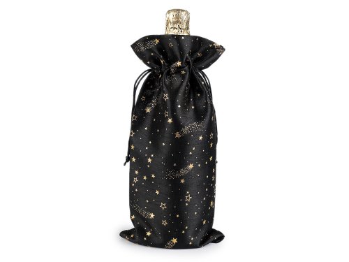 Vánoční dárkový pytlík ozdobený zlatým metalickým potiskem hvězdiček působí elegantně a luxusně. Je určený na zabalení lahví a jiných podlouhlých dárků. Pytlík je dostatečně vysoký, ať už se rozhodnete pro dárek s alkoholem nebo s domácí limonádou, ušetří vám čas při balení. Stahuje se pomocí kulatých saténových šňůrek, dárku dodá osobní kouzlo a půvab. Láhev není součástí pytlíku.
