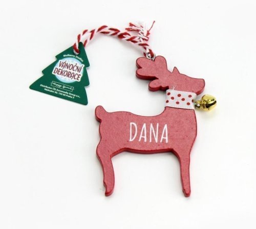 Dřevěné dekorace se jmény či texty lze použít nejen jako ozdobičku na stromeček, ale i jako stylovou jmenovku na dárek. S rolničkou a okrasnou stužkou. Sobíci pro ženy, bílí medvědi pro muže.