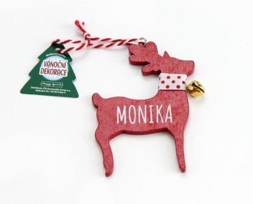 Dřevěné dekorace se jmény či texty lze použít nejen jako ozdobičku na stromeček, ale i jako stylovou jmenovku na dárek. S rolničkou a okrasnou stužkou. Sobíci pro ženy, bílí medvědi pro muže.