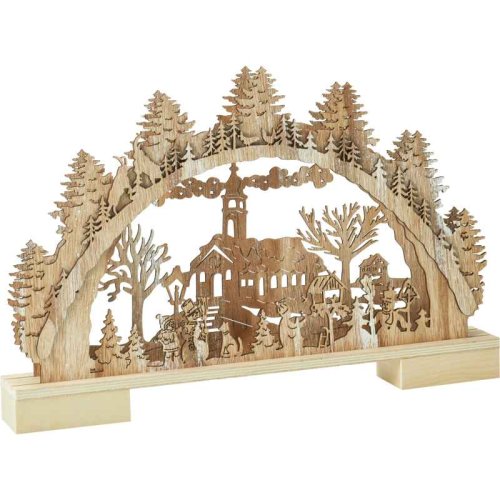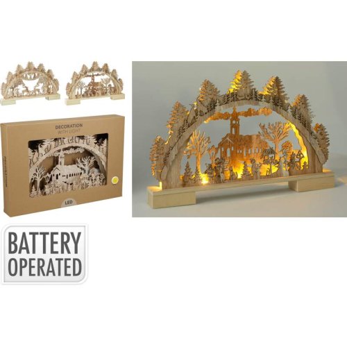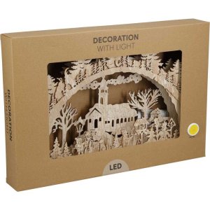 Kouzelná vánoční dekorace z přírodní překližky navodí příjemnou sváteční atmosféru v každém interiéru. Díky LED osvětlení krásně září a nabízí dvě varianty vánočních scén, které zútulní váš domov.