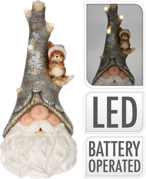 jedinečná svítící Vánoční dekorace v designu hlavy vánočního skřítka s veverkou - dekorace je vyrobená z MGO magneziové keramiky a je ručně malovaná - kvalitní materál odolný vůči vlhkosti, slunečnímu záření a změnám barev - neporovnatelně realističtější a kvalitnější zpracování než u plastových dekorací - na čepici skřítka jsou 3 LED žárovky v barvě teplá bílá - dekorace stojí stabilně na širokém podstavci - vhodná k použití uvnitř nebo v krytém exteriéru - napájení: 3x AA baterie (není součástí balení) - rozměry cca: 26,5 x 25,5 x 57 cm