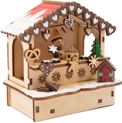 Tyto tři malé dřevěné vánoční chaloupky potěší zákazníky svými propracovanými detaily. Nepřímé osvětlení baterií ve stánku s kořením, stánku s perníkem a další... Stejně jako třpytivý sníh vytvářejí atmosféru vánočního prostředí. Baterie nejsou součástí balení. Hlavní vlastnosti: ideální dekorace pro zimní sezónuvytváří kouzelnou adventní atmosférupropracované detaily