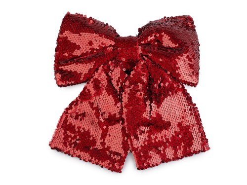 Vánoční mašle s flitry vyniká slavnostním třpytem a svou velikostí. Elegantně ozdobí stromeček, dekorační věnce, dveře, židle, velké dárky apod. Připevníte ji pomocí drátku, který je součástí mašle.