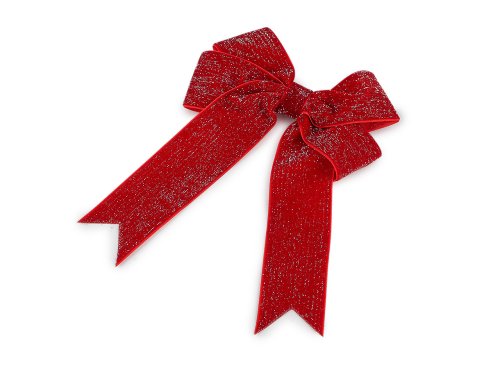 Vánoční mašle sametová dvojitá 13x18 cm - červená lurex (6 ks)