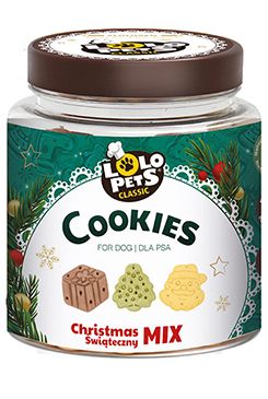 Vánoční edice křupavých pamlsků pro psy v praktické plastové dóze s víčkem.