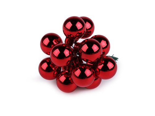 Vánoční skleněná baňka na drátku Ø2 cm - mat a lesk - červená lesk (12 ks)
