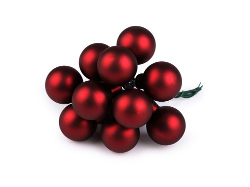 Vánoční skleněná baňka na drátku Ø2 cm - mat a lesk - červená tmavá mat (12 ks)