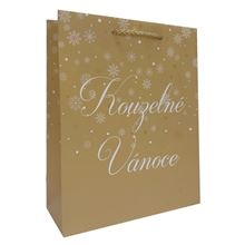 • Zlatá dárková taška s bílým nápisem Kouzelné Vánoce