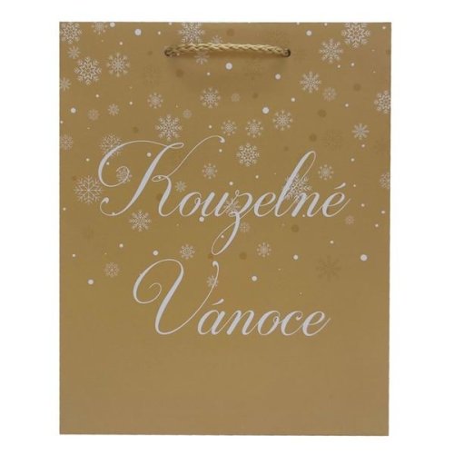 • Zlatá dárková taška s bílým nápisem Kouzelné Vánoce