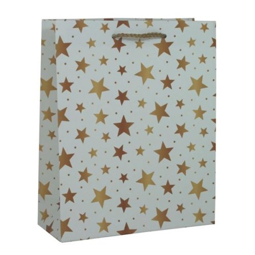 Bílá vánoční taška s motivem zlatých hvězd Rozměr: 26 x 32 x 10 cm