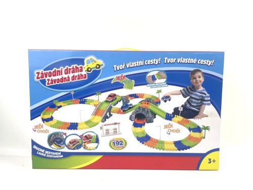 Vlastnosti: Délka dráhy: 285 cm, šířka kolejnice: 7,8 cm Obsah balení: 192 dílů dráhy, 1 autíčko, tunel a přemostění Dvě varianty autíček: červené a modré Snadné sestavení a možnost rozšíření díky kompatibilitě s některými dalšími produkty