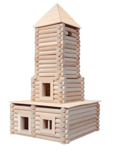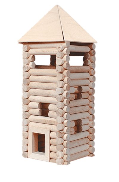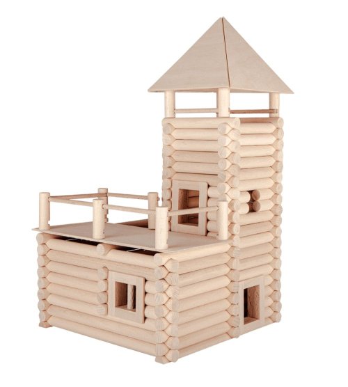 Stavebnice z masivního bukového dřeva ( prům. 15 mm ). Lze ji skládat i rozkládat. Z této stavebnice postavíte mnoho variant staveb. Ve stavebnicích WALACHIA® naleznete vše potřebné k sestavení. Jsou zde uloženy dřevěné hranolky o průřezu 9x9mm daných délek ke stavbě roubených stěn, díly na štíty a střechy, kartonové výseky oken a dveří i papírové potisky, plochy štítů, střech, stříšek, dveří, oken a dlažeb, folie oken a brusný papír na opracování dřevěných dílů ( kvalita ploch však opracování potřebuje minimálně ). Součástí stavebnice je podrobný schematický montážní plán. Počet dílů: 184.