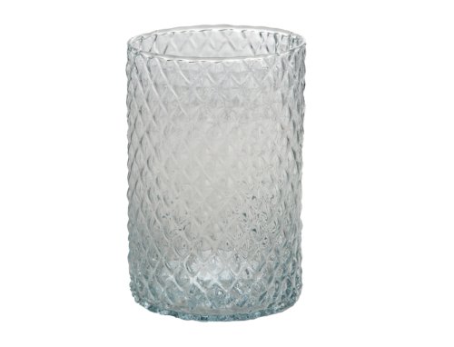 Skleněná, zdobená, ručně vyráběná váza. Zdobení připomíná záplavu drobných diamantů. Ve tvaru válce. Vhodná pro květiny i aranžmá, jako bytová dekorace. Průměr: 15 cm, výška: 20 cm. Barva: čirá.